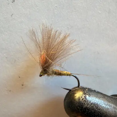 • Montaje: Anzuelo del 12-14-16. Cuerpo en dubbing oliva/marrón. Alas de pelo de ciervo o corzo. parachute de gallo marrón con señalizador para su visualización.